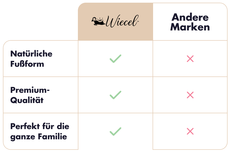 Wir sind stolz auf die Qualität unserer Wiecel™-Schuhe, bei denen Komfort und Wohlbefinden im Mittelpunkt stehen. Das Gleiche können wir von anderen nicht behaupten.