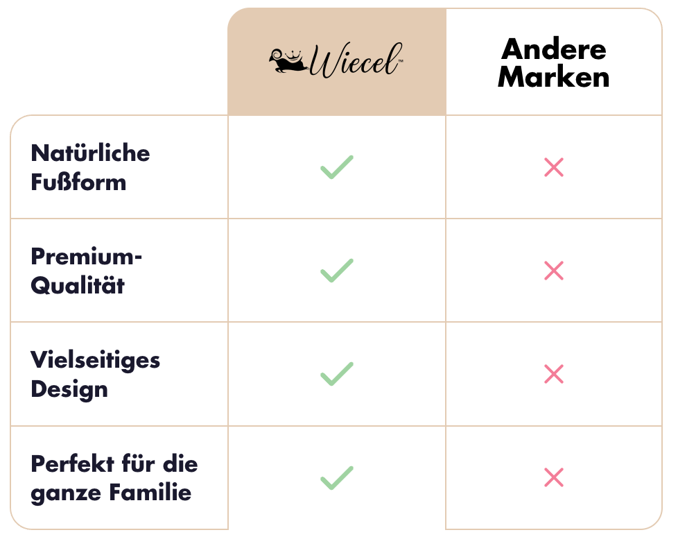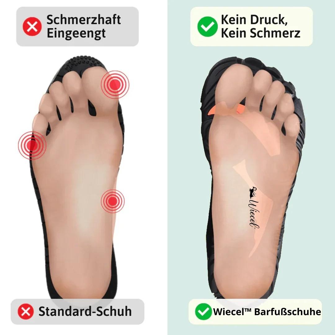 Empfohlen von orthopädischen und podologischen Experten überzeugen sie durch ihr ergonomisches Design, das die Fußgesundheit fördert und Schmerzen effektiv lindern kann. Mit den Wiecel™ Barfußschuhen gehst du nicht nur bequem, sondern auch mit dem guten Gefühl, dass deine Füße bestens versorgt sind – bei jedem Schritt und in jeder Situation.